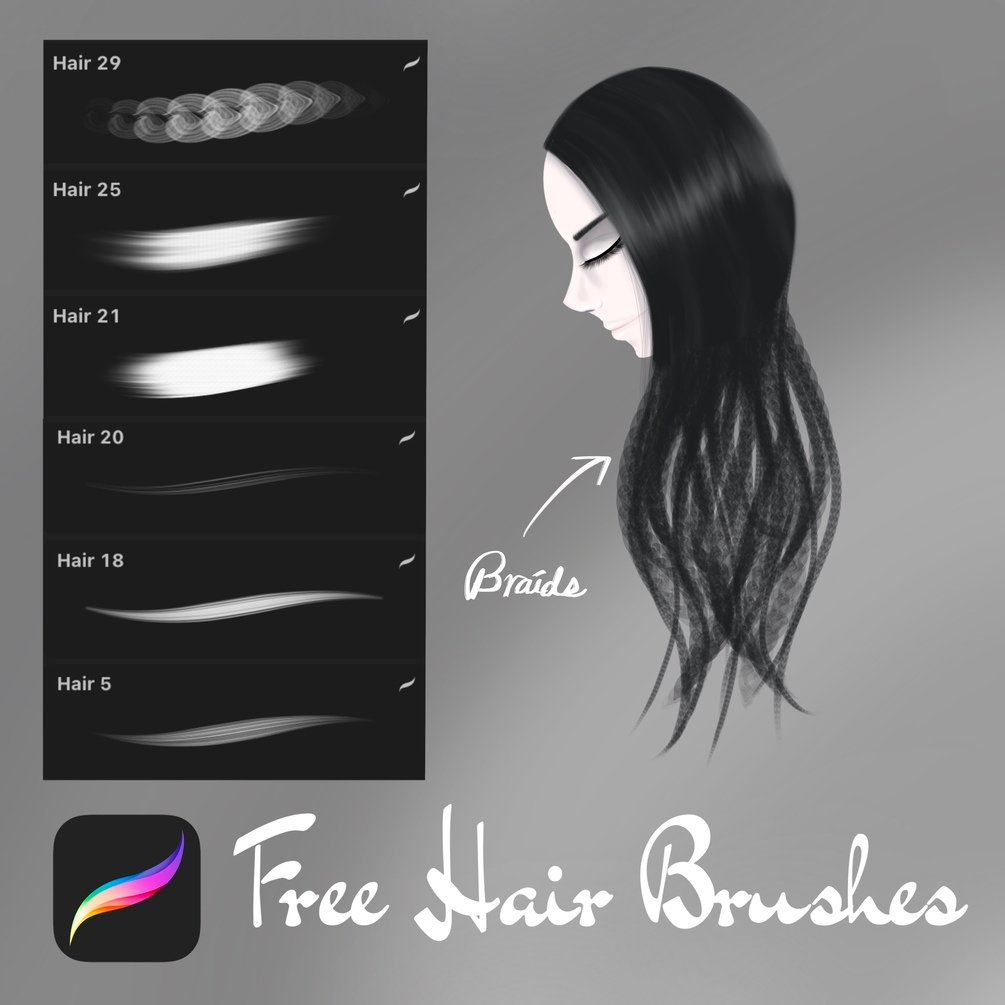 6 free hair brushes from latest brush set and next brush set for Procreate.